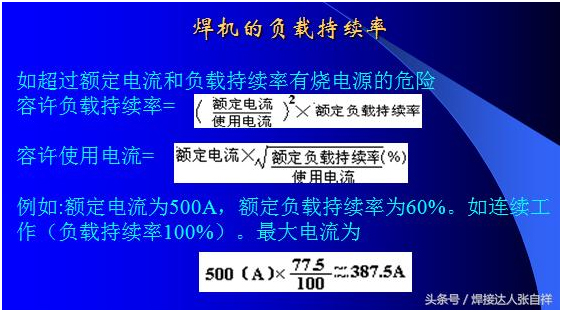 除了以上干伸長(cháng)度對焊接的要求以外,對于送絲輪的使用可以參照上圖,焊接碳鋼、不銹鋼等實(shí)心焊絲采用的送絲輪為V型,焊接鋁合金或藥芯焊絲等材質(zhì)較軟的焊絲可采用U型輪,如果選擇錯誤,可能會(huì )出現送絲不暢,參數匹配有誤等問(wèn)題,另外,對于焊絲來(lái)講,每一種焊絲都有其焊接范圍,比如,如果采用1.2Mm焊絲,要想焊接500A的電流,就是把調節電流放到最大500A,也只能出300多安的電流就是這個(gè)道理,要想焊到500A,只需要不絲徑加到1.6或更粗的焊絲即可。這也是防止焊機超負載使用的一個(gè)方法,比如采用60%占載率的氣保500焊機,如果長(cháng)時(shí)間焊接,那么根據公式就只能得出380A以?xún)瓤梢蚤L(cháng)時(shí)間焊接,為了避免焊工誤操作,可以選用1.2mm絲徑就不會(huì )出現超負載應用了,具體公式算法及焊絲需用電流表如下: