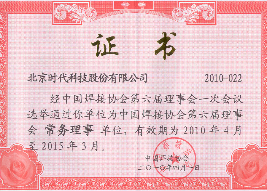 2016-04 中國職工焊接技術(shù)協(xié)會(huì ) 焊接設備專(zhuān)業(yè)委員會(huì )常務(wù)理事單位證書(shū) 中國職工焊接技術(shù)協(xié)會(huì ) 焊接設備專(zhuān)業(yè)委員會(huì )