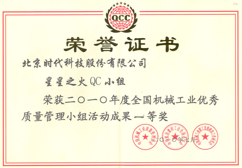 2010-07 全國機械工業(yè)優(yōu)秀質(zhì)量管理小組活動(dòng)成果一等獎 中國機械工業(yè)質(zhì)量管理協(xié)會(huì )