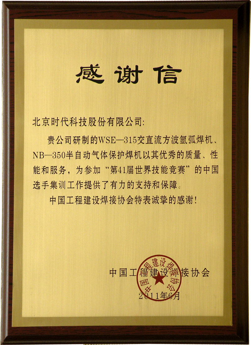 2011-06 參與世界技能大賽感謝信 中國工程建設焊接協(xié)會(huì )
