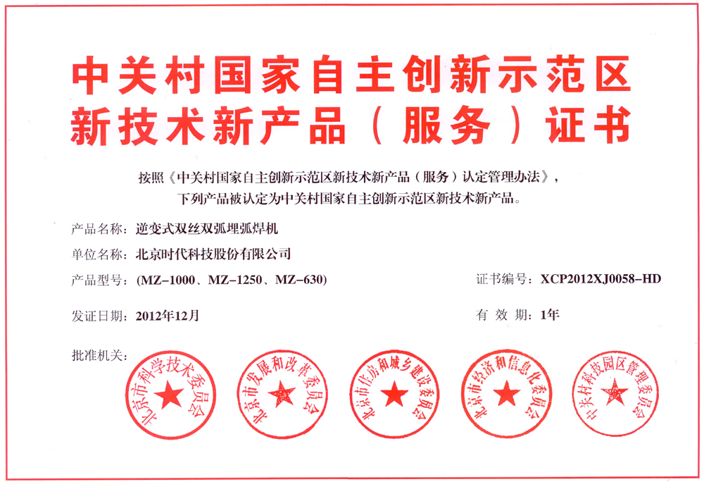 2012-12 中關(guān)村新技術(shù)新產(chǎn)品證書(shū) 北京市科學(xué)技術(shù)委員會(huì )