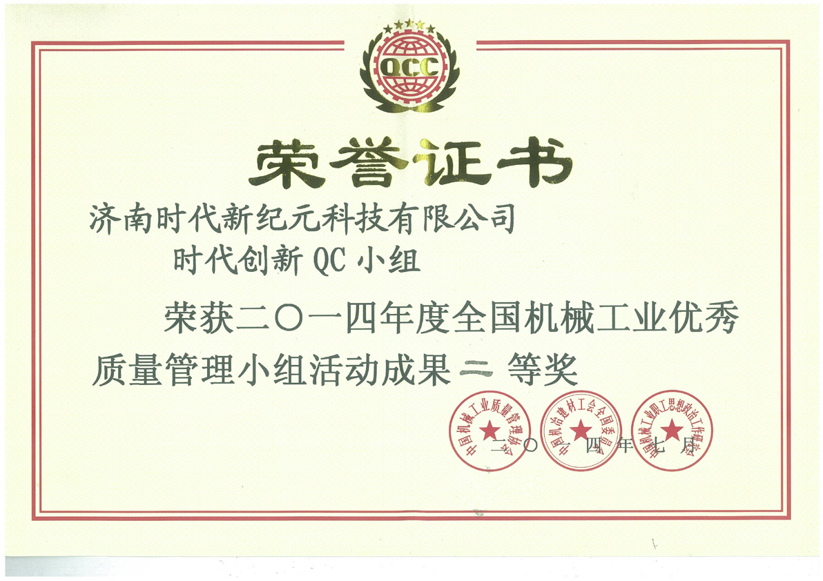 2014-08 2014年全國機械工業(yè)優(yōu)秀質(zhì)量管理小組獎 二等獎 中國機械工業(yè)質(zhì)量管理協(xié)會(huì )