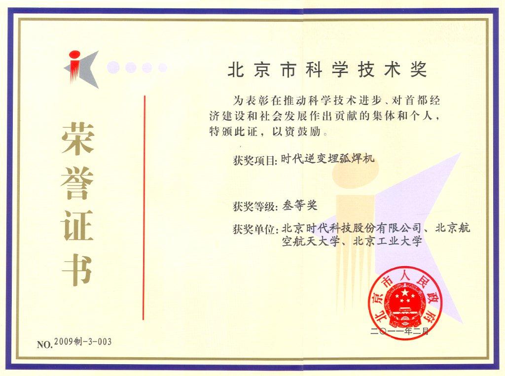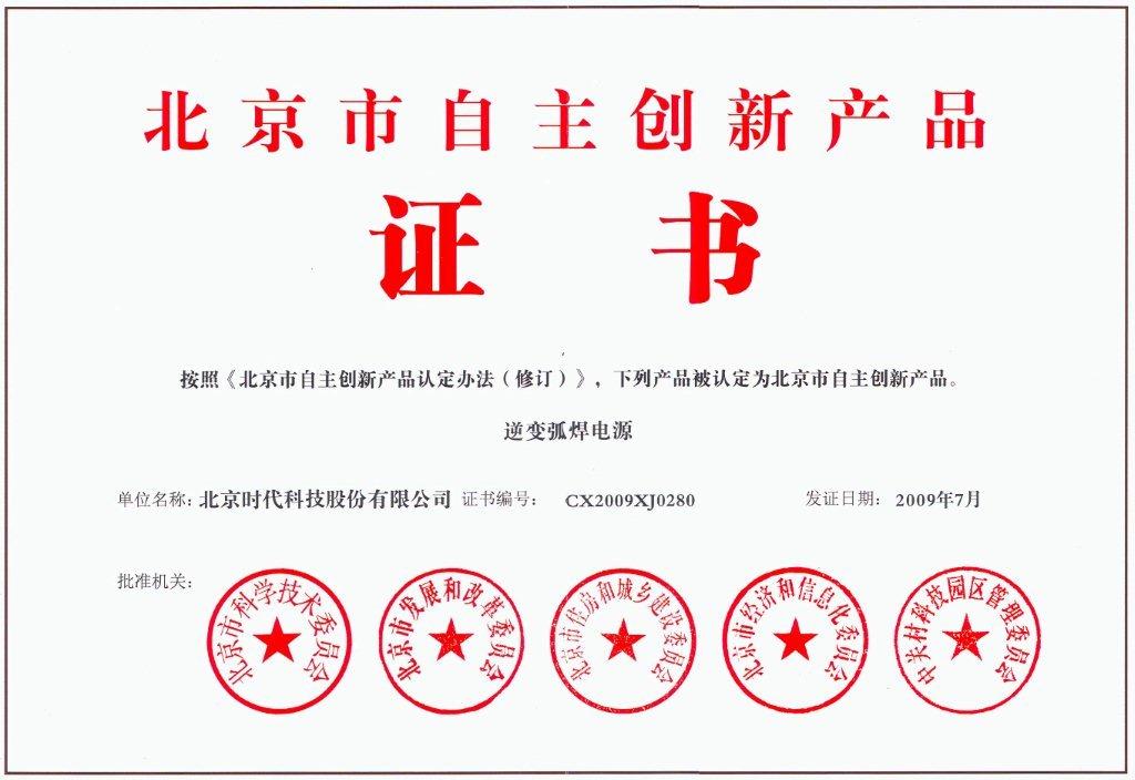 2009-07 北京市自主創(chuàng )新產(chǎn)品(逆變弧焊電源) 北京市科學(xué)技術(shù)委員會(huì )