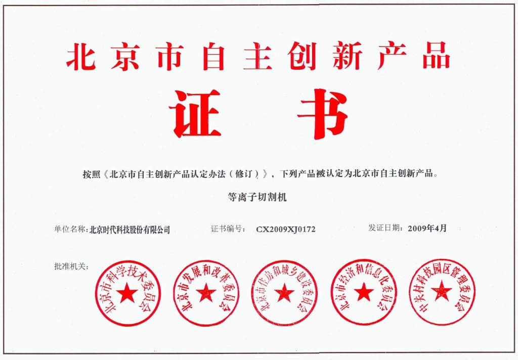 2009-04 北京市自主創(chuàng )新產(chǎn)品(等離子切割機) 北京市科學(xué)技術(shù)委員會(huì )