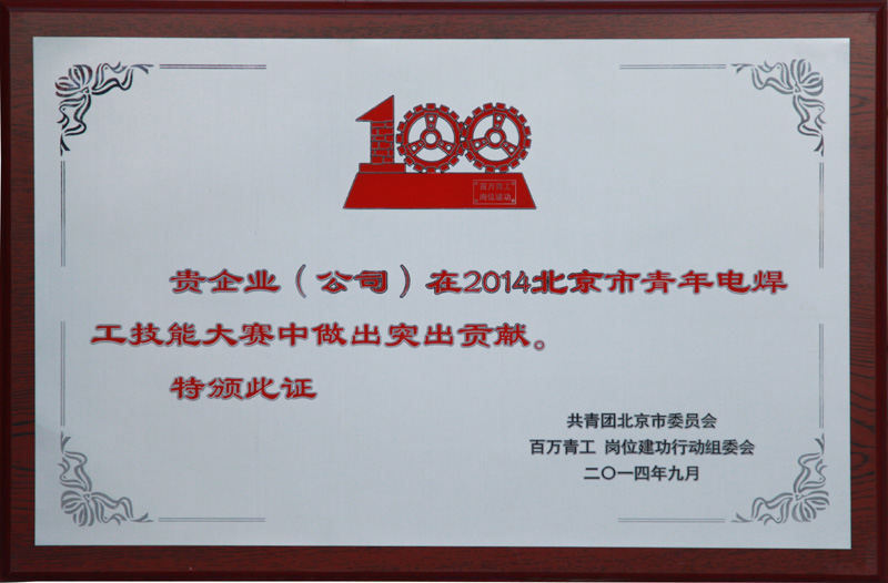 2014-12 北京市青年電焊工技能大賽 突出貢獻獎 共青團北京市委員會(huì )