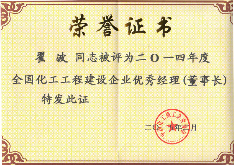 2015-02 2014年度全國化工工程建設單位 優(yōu)秀經(jīng)理(董事長(cháng)) 中國化工施工企業(yè)協(xié)會(huì )