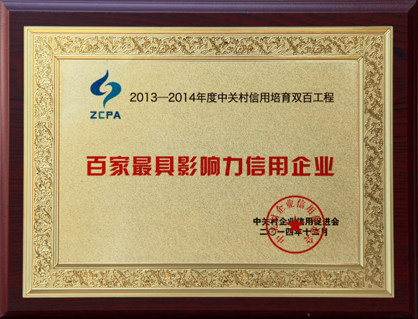 2014-12 百家最具影響力信用企業(yè) 中關(guān)村企業(yè)信用促進(jìn)會(huì )