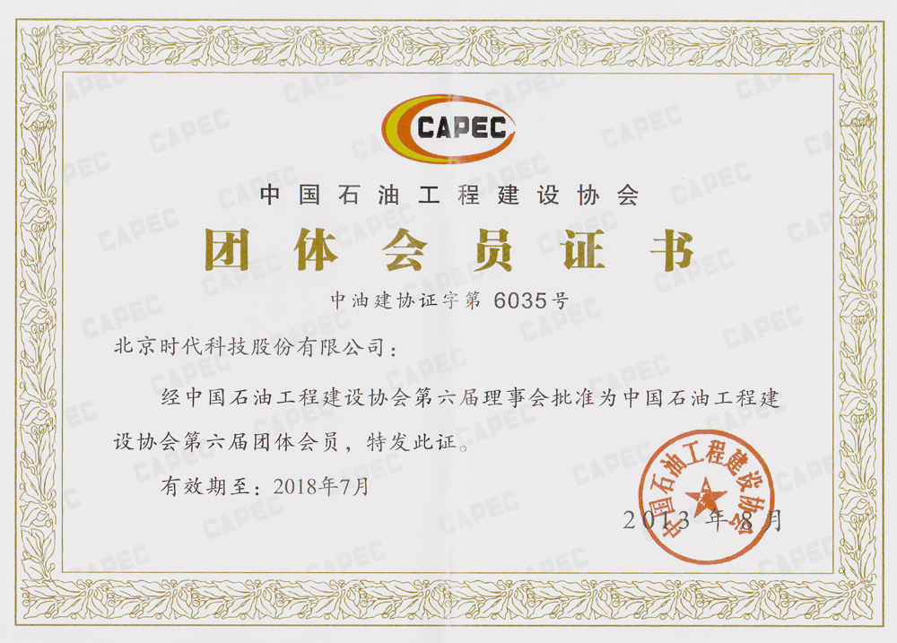 2018-06 中國石油工程建設協(xié)會(huì )團體會(huì )員證書(shū) 中國石油工程建設協(xié)會(huì )
