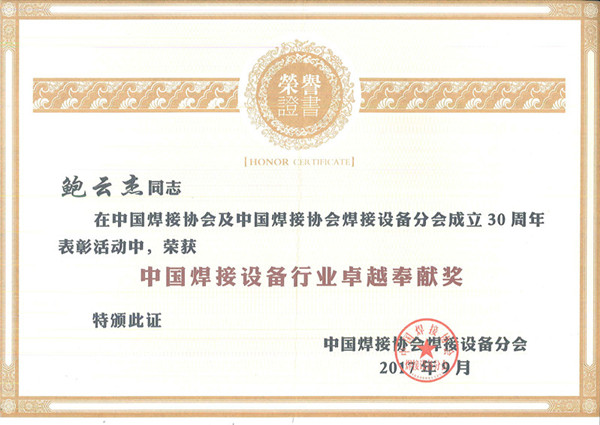 2017-09 中國焊接設備行業(yè)卓越奉獻獎 中國焊接協(xié)會(huì )焊接設備分會(huì )